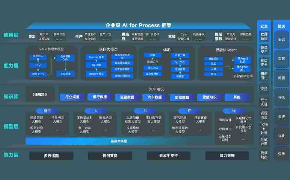 端到端的一站式AI工作空间深度融合了从企业战略规划到日常经营的全流程业务板块,,,,定向解决车企内部领域多、、、、部门多、、链条长、、、场景碎片化等难题,,支持车企快速构建以AI为核心的生产力写作体系,,实现任务执行与AI能力的无缝集成与交互